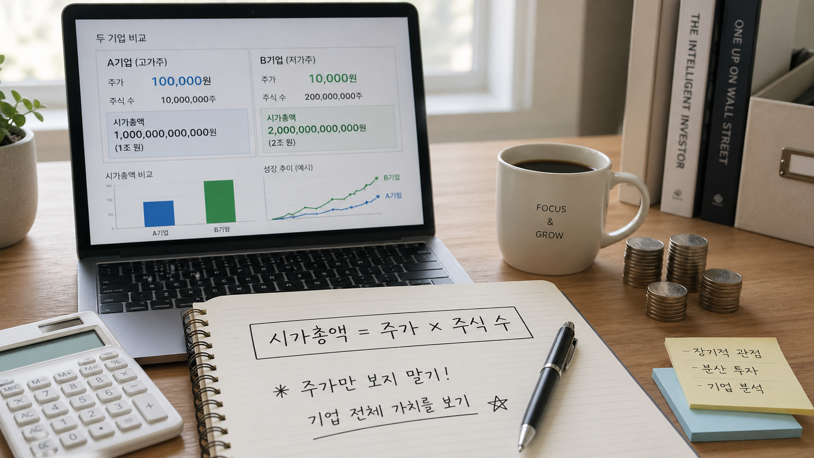 저도 처음에는 몇천 원짜리 종목이 훨씬 매력적으로 보였습니다. 같은 돈으로 더 많은 주식을 살 수 있으니까 괜히 이득 보는 느낌이 있었거든요. 하지만 시간이 지나고 보니 주식 수를 많이 갖고 있는 것과 좋은 투자를 하는 건 전혀 다른 이야기였습니다. 1주를 사더라도 좋은 기업의 일부를 사는 게 중요하지, 숫자만 많이 쥐고 있다고 투자 실력이 올라가는 건 아니더라고요. 결국 시가총액을 본다는 건 단순히 용어 하나를 배우는 게 아니라, 주식의 단위 가격에 속지 않고 기업 전체를 보는 시선을 갖는 일입니다.